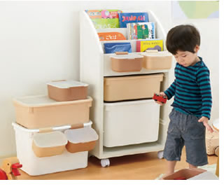 おもちゃと絵本をまとめて収納できます。